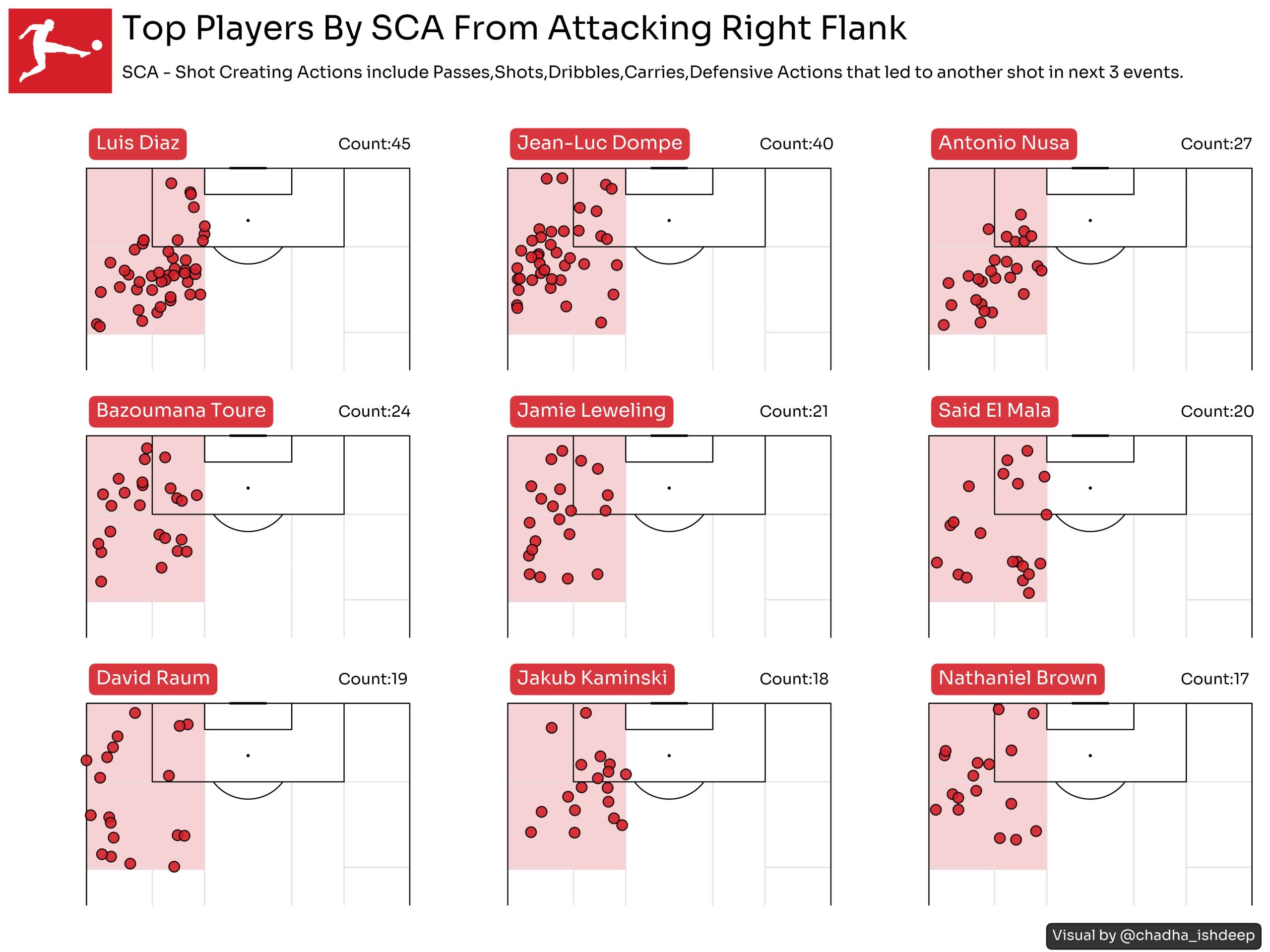 Чаще всего «Штутгарт» атакует левым флангом (37% атак), где играет связка Миттельштадт-Левелинг. Они оба любят играть в ширине, поэтому доставка на фланг часто осуществляется через диагонали. Миттельштадт располагается в более глубокой позиции и развивает атаки передачами между линиями. Левелинг создаёт моменты через изоляции. Он обладает хорошей стартовой скоростью, резко меняет направление движения и хорошо владеет обеими ногами. Немец опасен как при смещениях в середину, так и при обыгрыше во фланг, так как не тратит дополнительное время на подработку под рабочую ногу. На текущем отрезке сезона он является четвёртым игроком Бундеслиги по предударным действиям, созданным слева. Без Левелинга игра становится предсказуемее, и игрок в ширине зачастую отдаёт передачу забегающему в полуфланге партнёру.